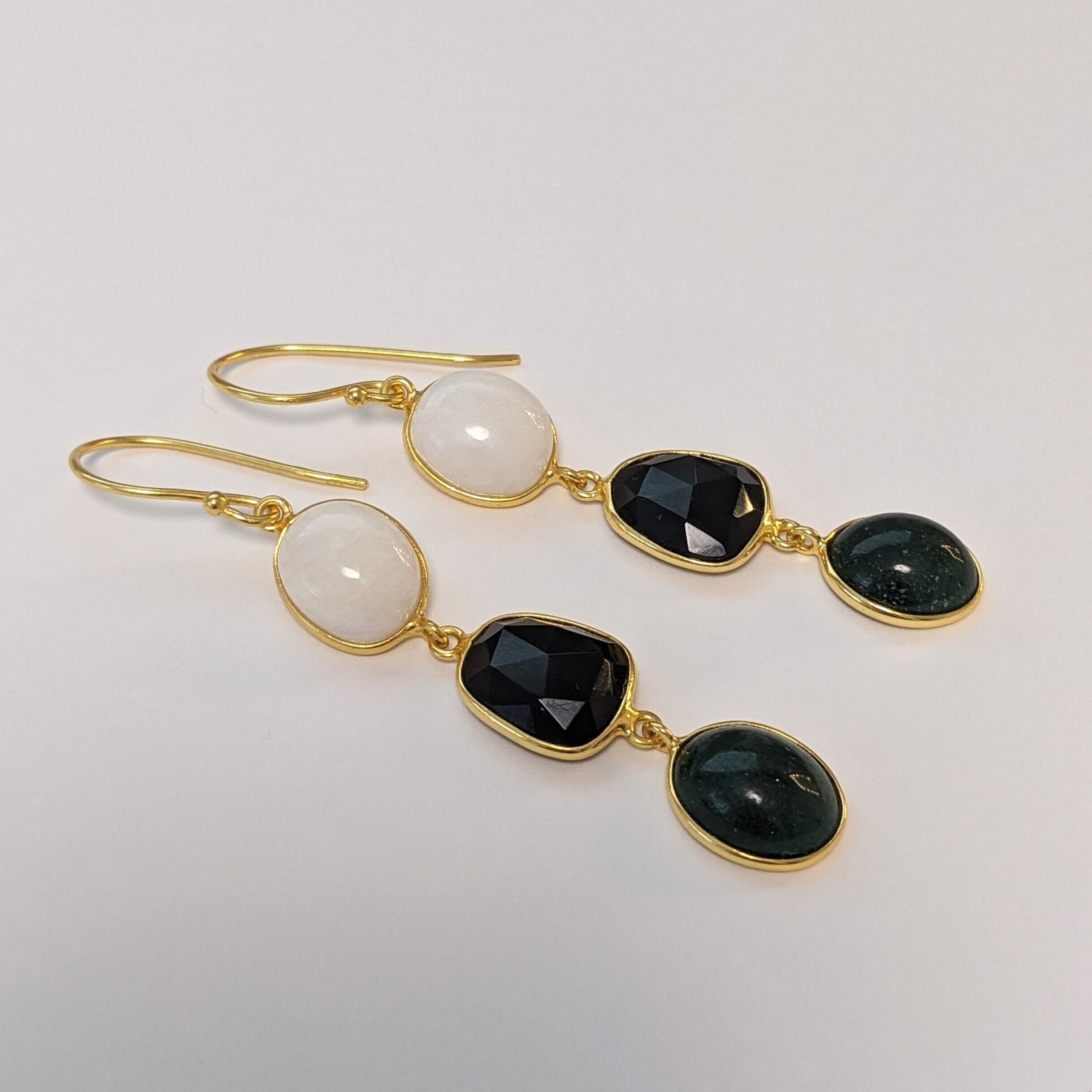 グリーンジェイド、ブラックオニキス、ホワイトアゲートのフックピアス