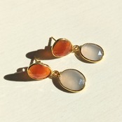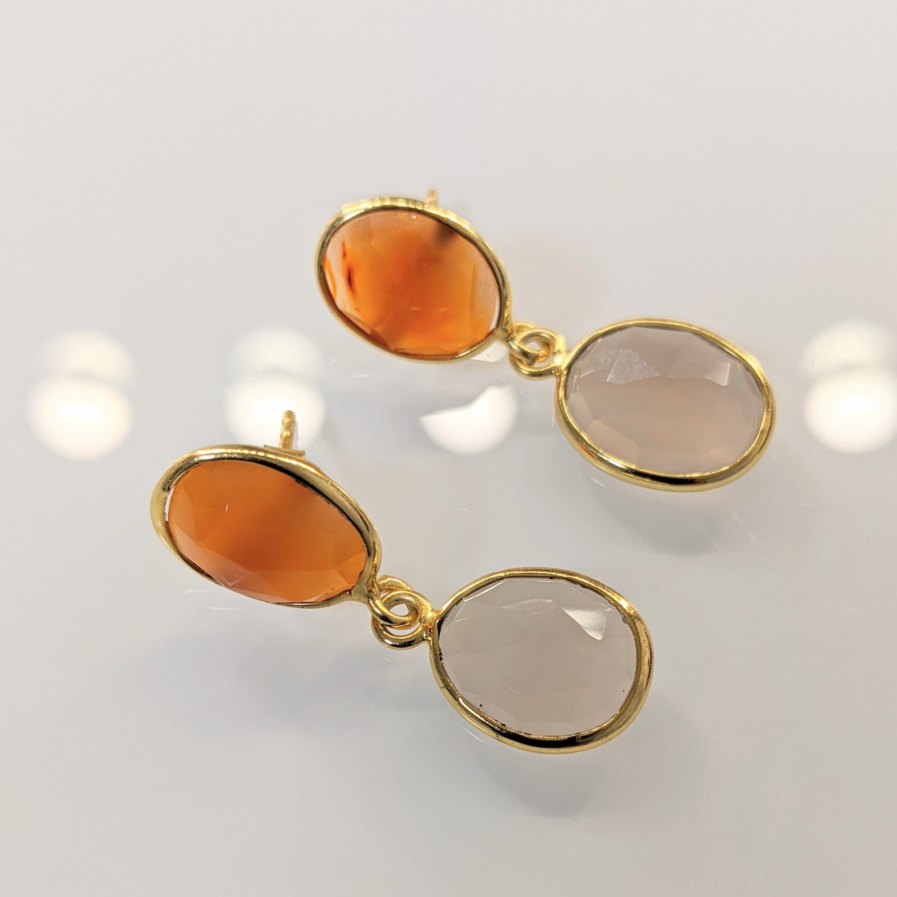 カーネリアンとグレーカルセドニーのバイカラーピアス(YG)