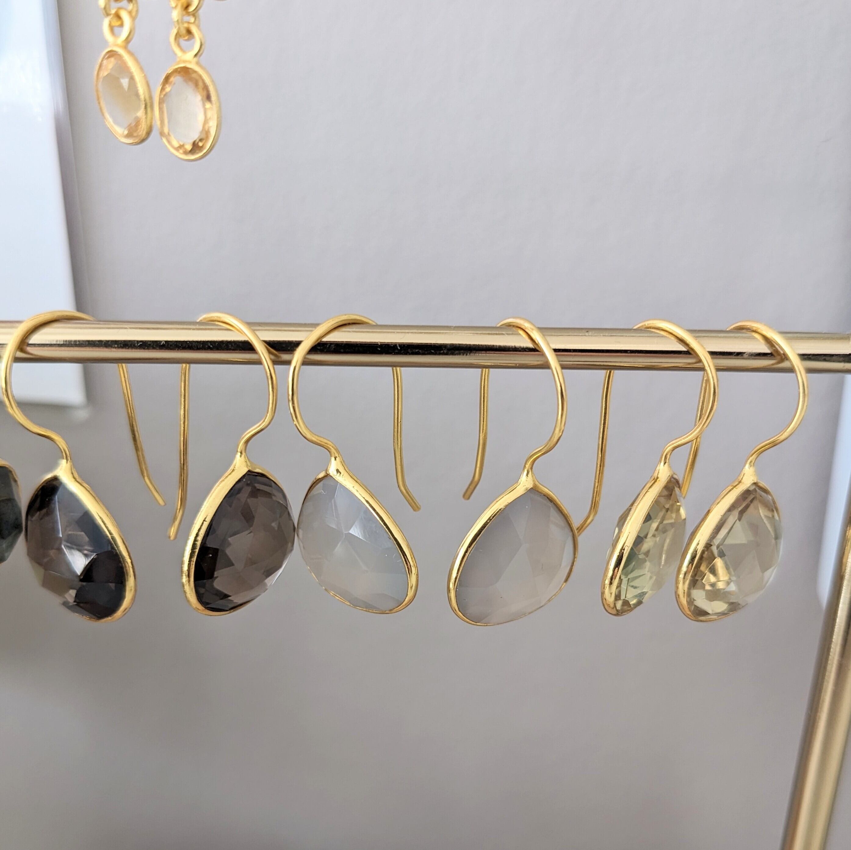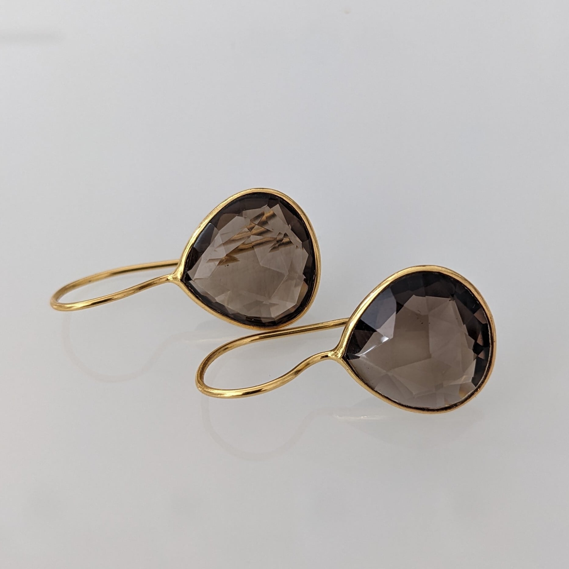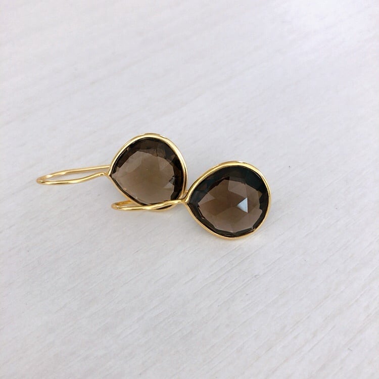 スモーキークォーツのペアシェイプフックピアス(フック旧タイプ)
