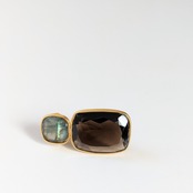 スモーキークォーツとラブラドライトの大きめスクエアピアス
