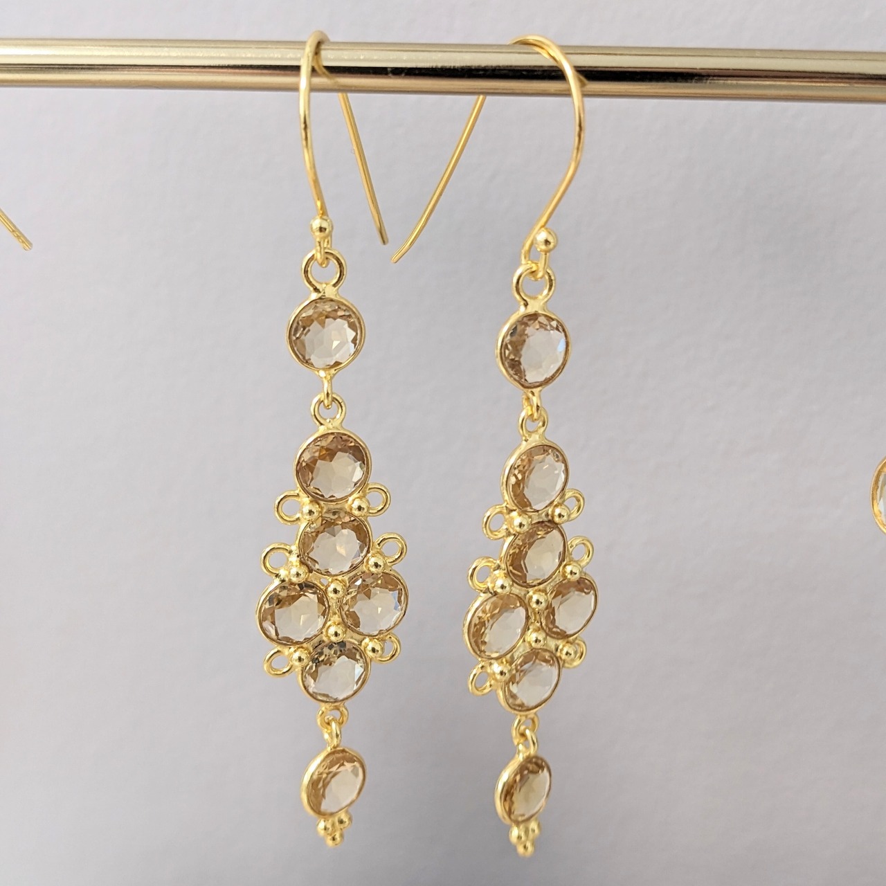 雨の雫をつなげたようなうるうるのシトリンピアスです。2022冬初登場です。